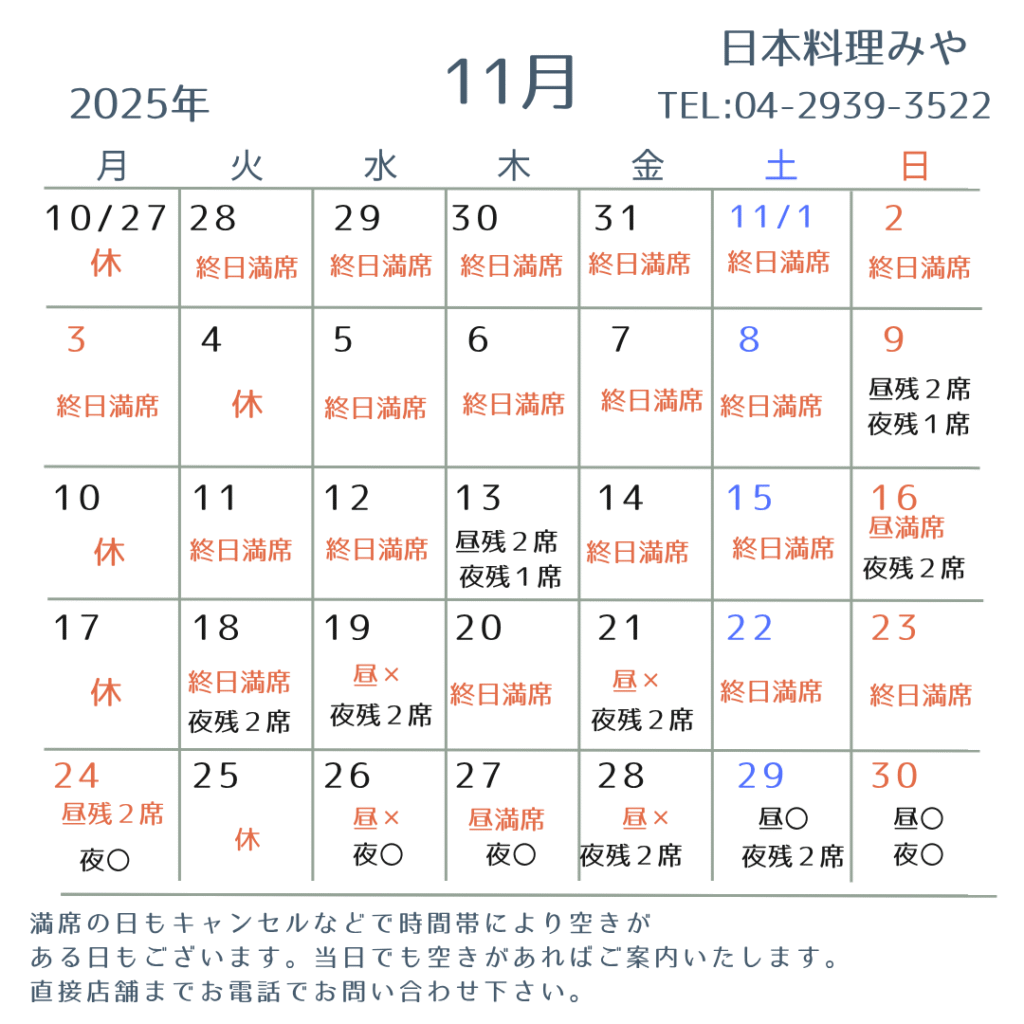 11月のご案内&年末年始