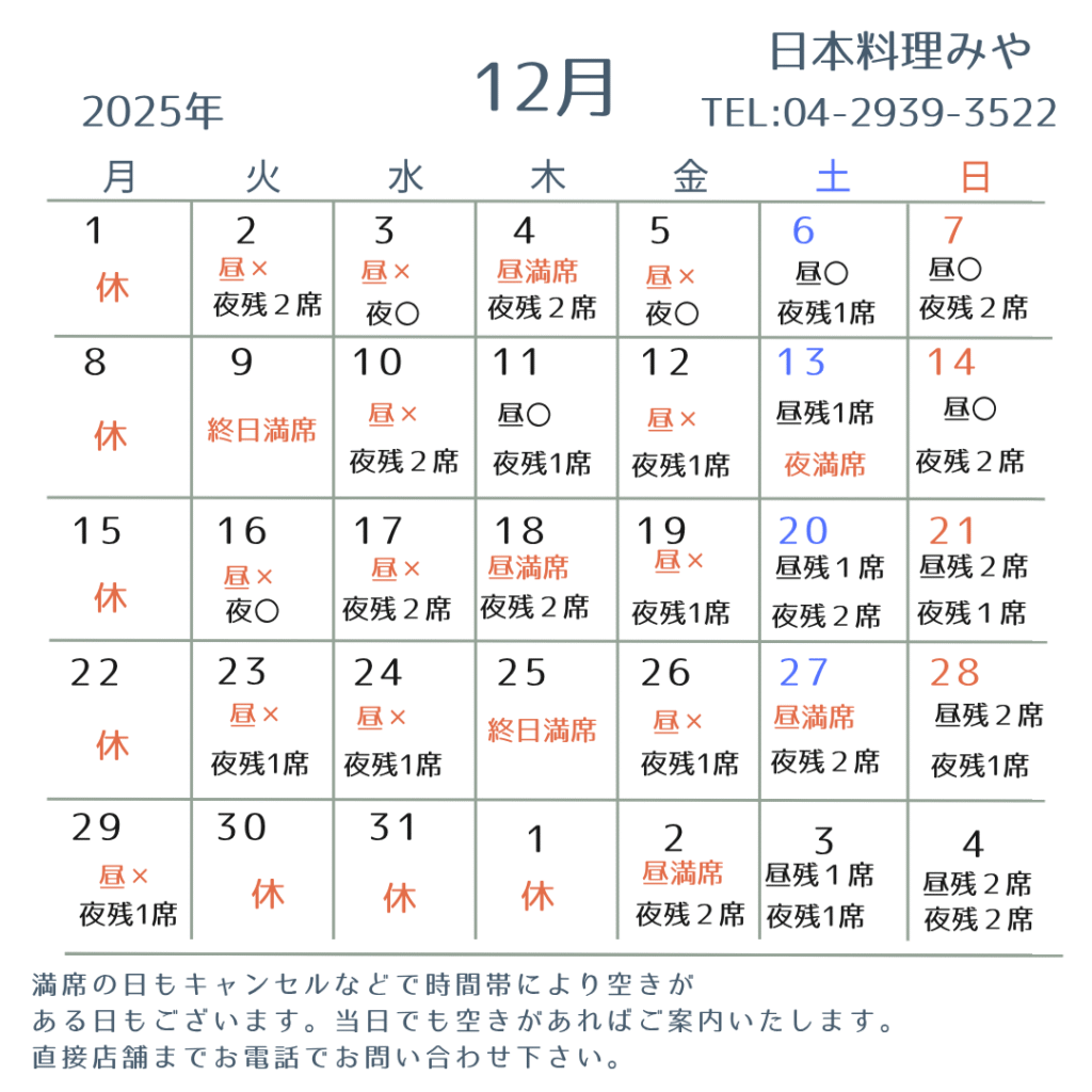 また、年末は12月29日まで年始は1月2日より営業いたします。